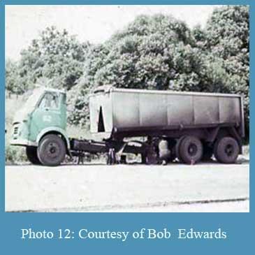 Mechanical failures & accidents were common place (photos 11 & 12). The workshop facility based in the main street of Narellan cared for the maintenance & breakdown requirements of the fleet. A tow truck was readily available to pick up broken down vehicles. The workshop was continually repairing or fitting new engines, transmissions or final drives to the trucks.
