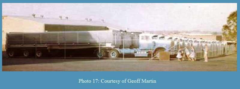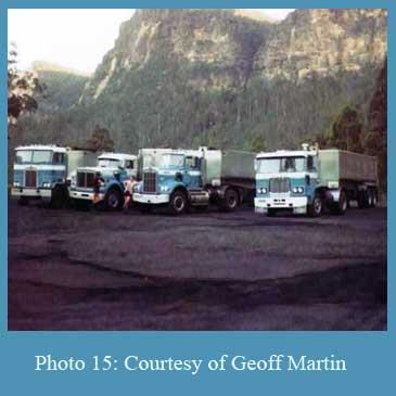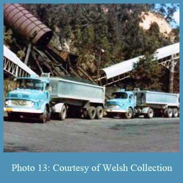 The short trailers were made so that they could continue to operate out of the valley (photo 16). Now the trucks were larger with bigger payloads, it was decided at this time to reduce the fleet size.